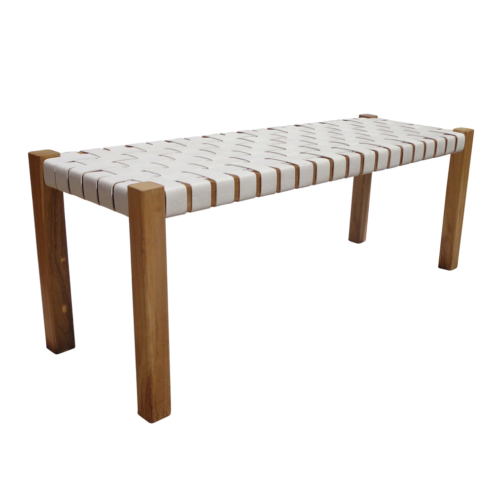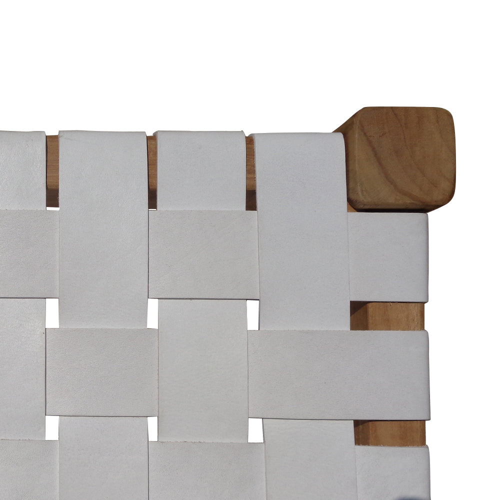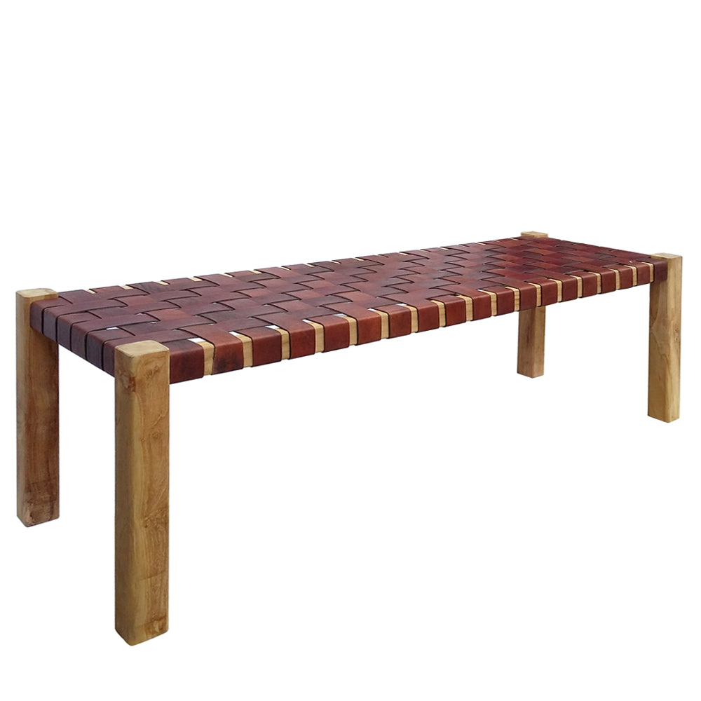 Кожената пейка ZUZI е с рамка от масивно тиково дърво, съчетана с ръчно тъкани кожени каишки, добавяйки уникален щрих на майсторска изработка и визуален интерес. Тази експертно проектирана пейка съчетава издръжливост със занаятчийски детайли, което я прави отличителен и изискан вариант за сядане както за вътрешни, така и за външни пространства.