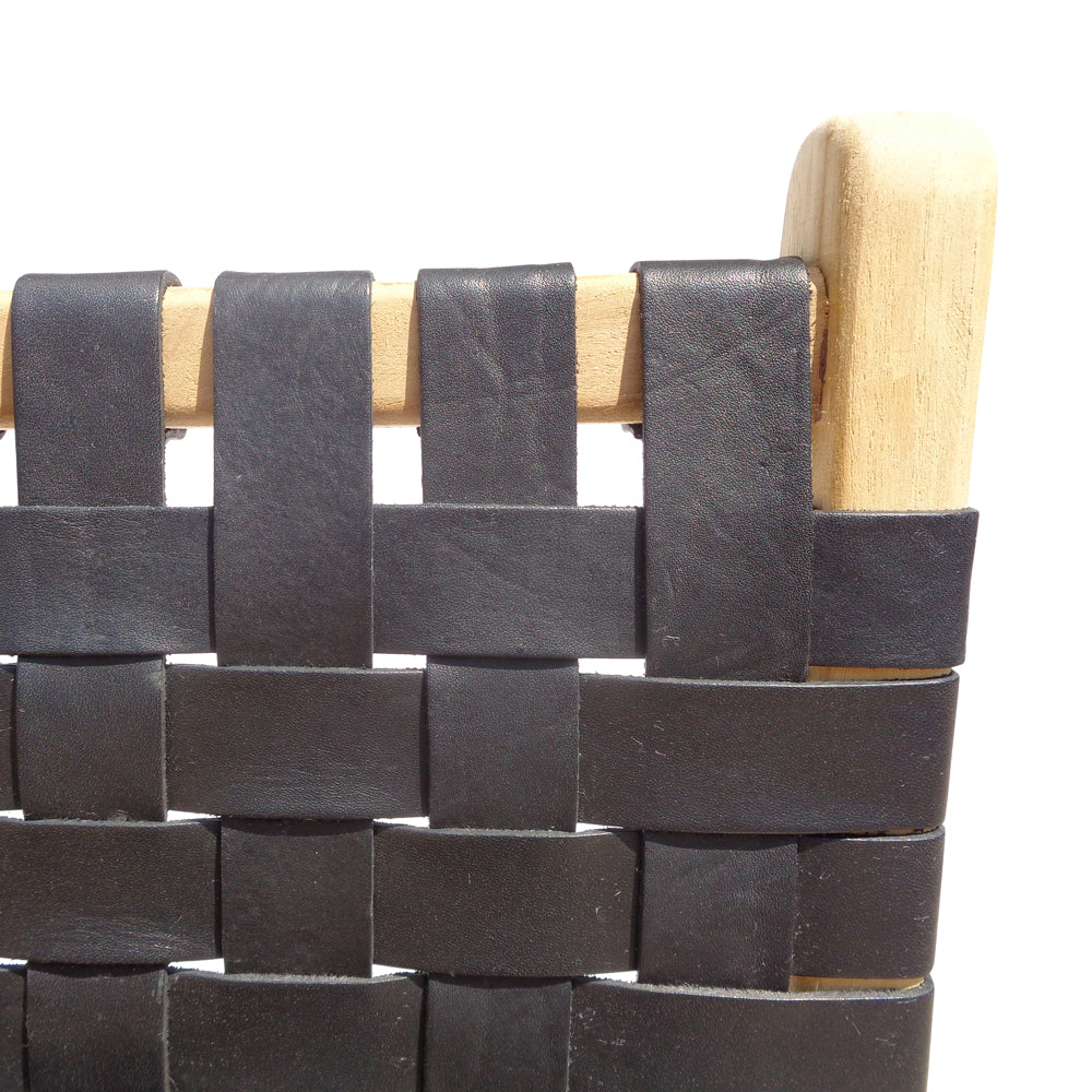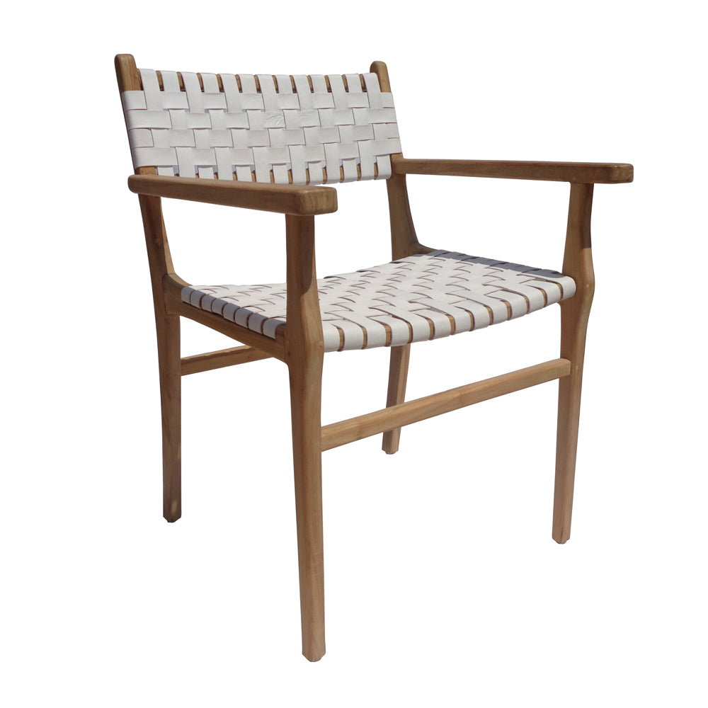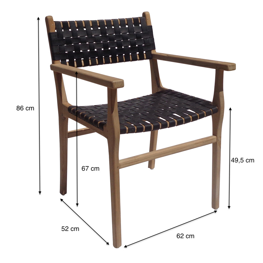 Материал: Конструкция от тиково дърво / седалка и облегалка, тапицирани с тъкани кожени ленти