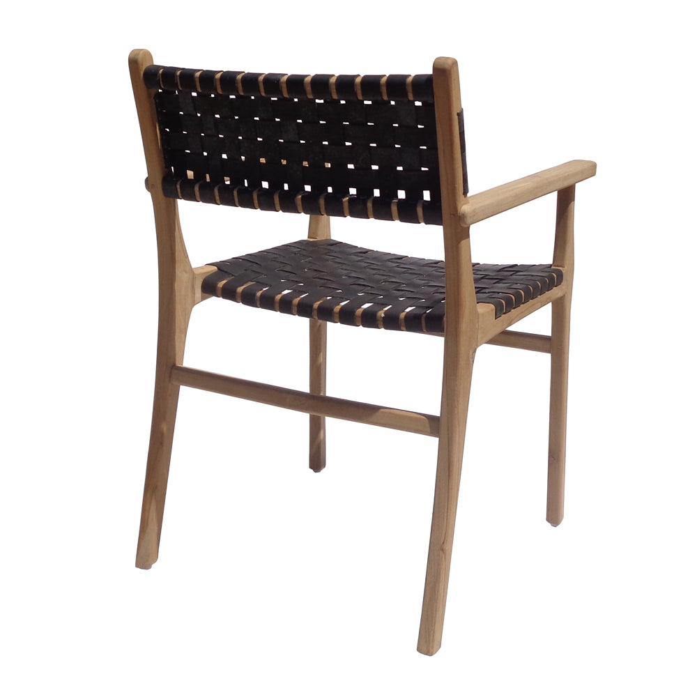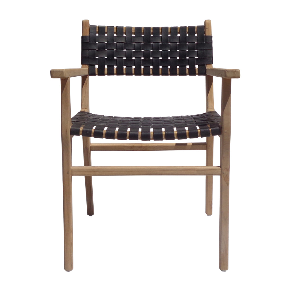 Черният кожен фотьойл за хранене ZUZI ARM е с издръжлива рамка от тиково дърво, комбинирана с висококачествена кожена тапицерия, предлагана в три цвята: бял, черен и естествен. Проектиран както за вътрешна, така и за външна употреба, този стол предлага дълготрайна здравина и устойчивост на атмосферни влияния. Елегантният му дизайн и здравата му конструкция го правят изтънчен и практичен избор за трапезарии, търсещи комфорт и гъвкавост.