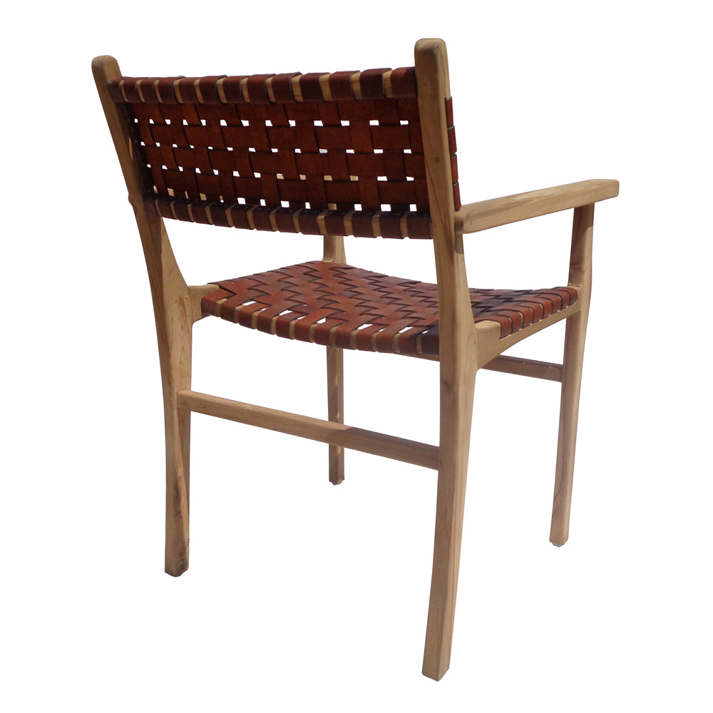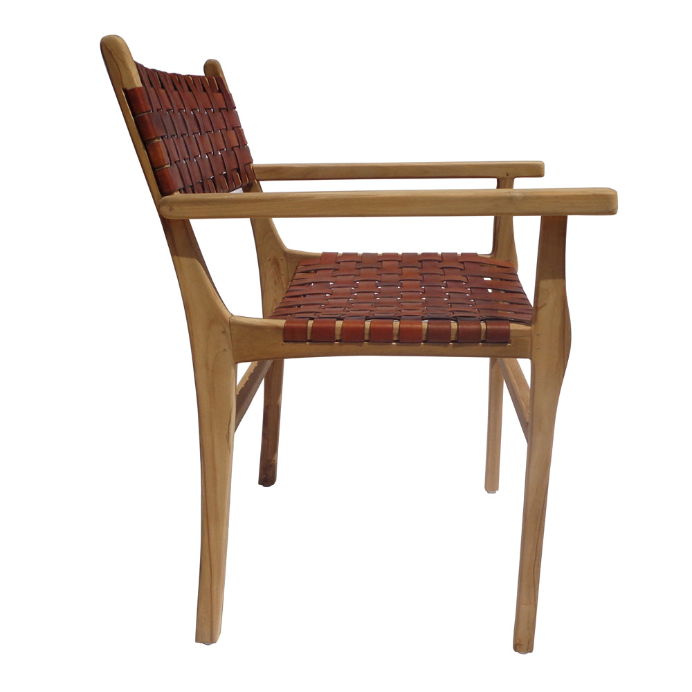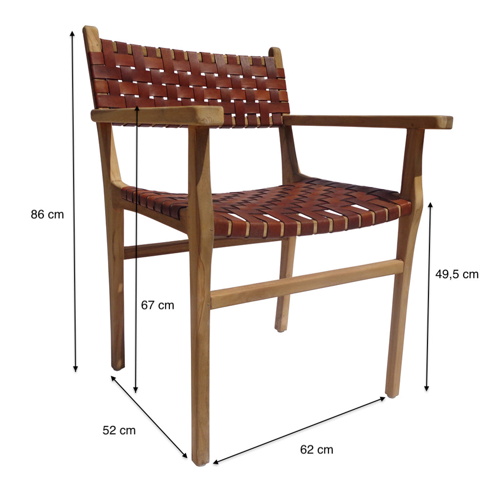 Материал: Конструкция от тиково дърво / седалка и облегалка, тапицирани с тъкани кожени ленти