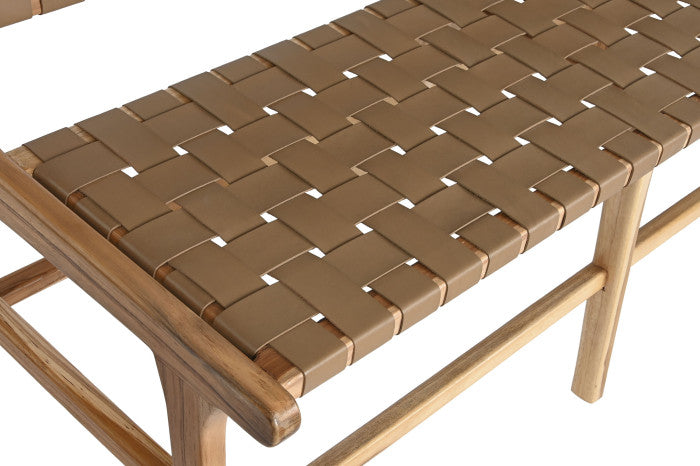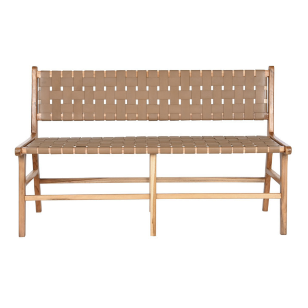 Кожената пейка Zuzi Beige съчетава висококачествена кожена тапицерия с издръжлива тикова дървесина, което я прави идеално решение за сядане както за вътрешни, така и за външни пространства. Устойчивата на атмосферни влияния рамка от тиково дърво осигурява дълготрайност на тераси, кафенета, ресторанти или хотели. Удобната кожена седалка предлага изискан вид, като същевременно осигурява издръжливост и лесна поддръжка, перфектно балансирайки стил и функционалност в търговски или жилищни условия.