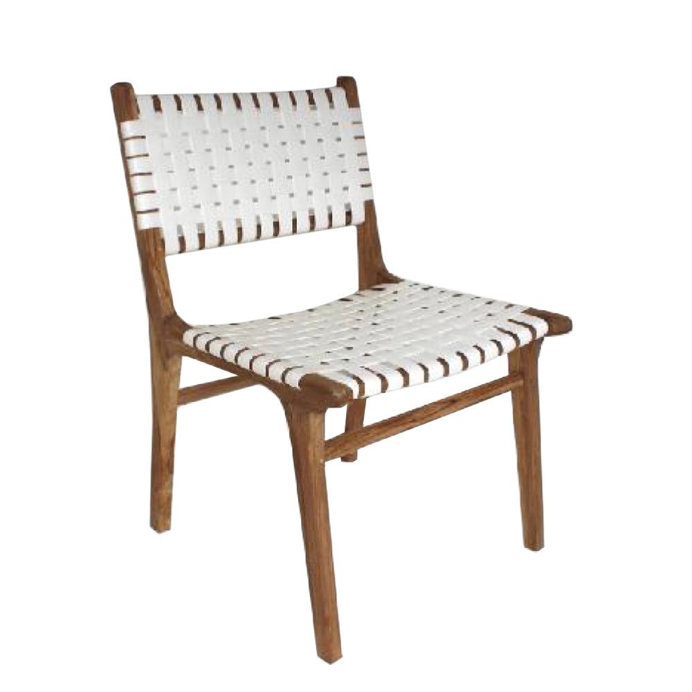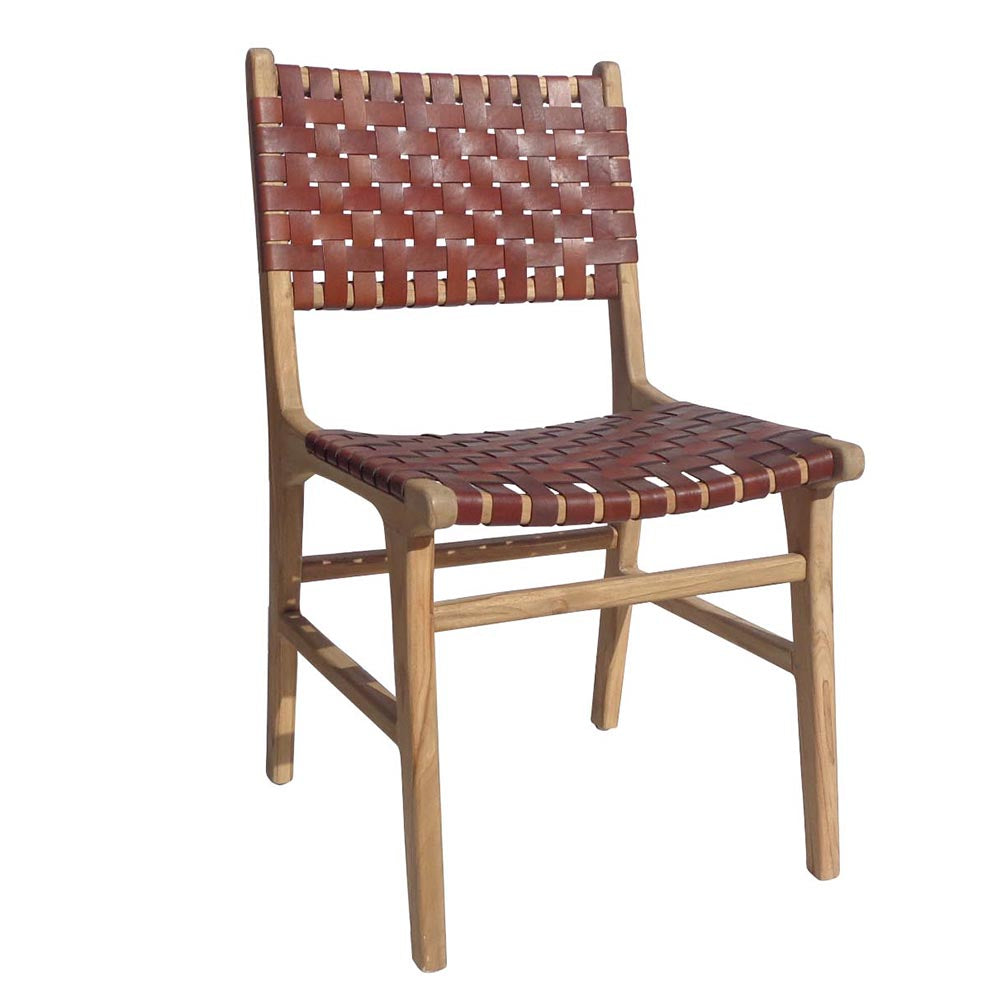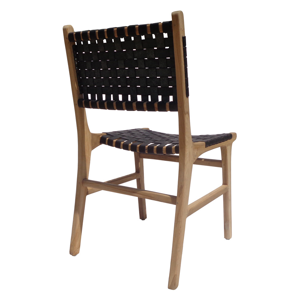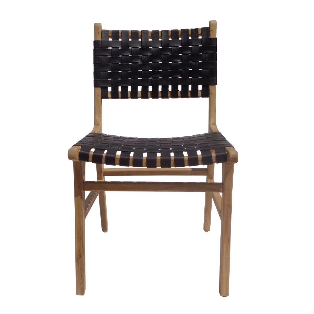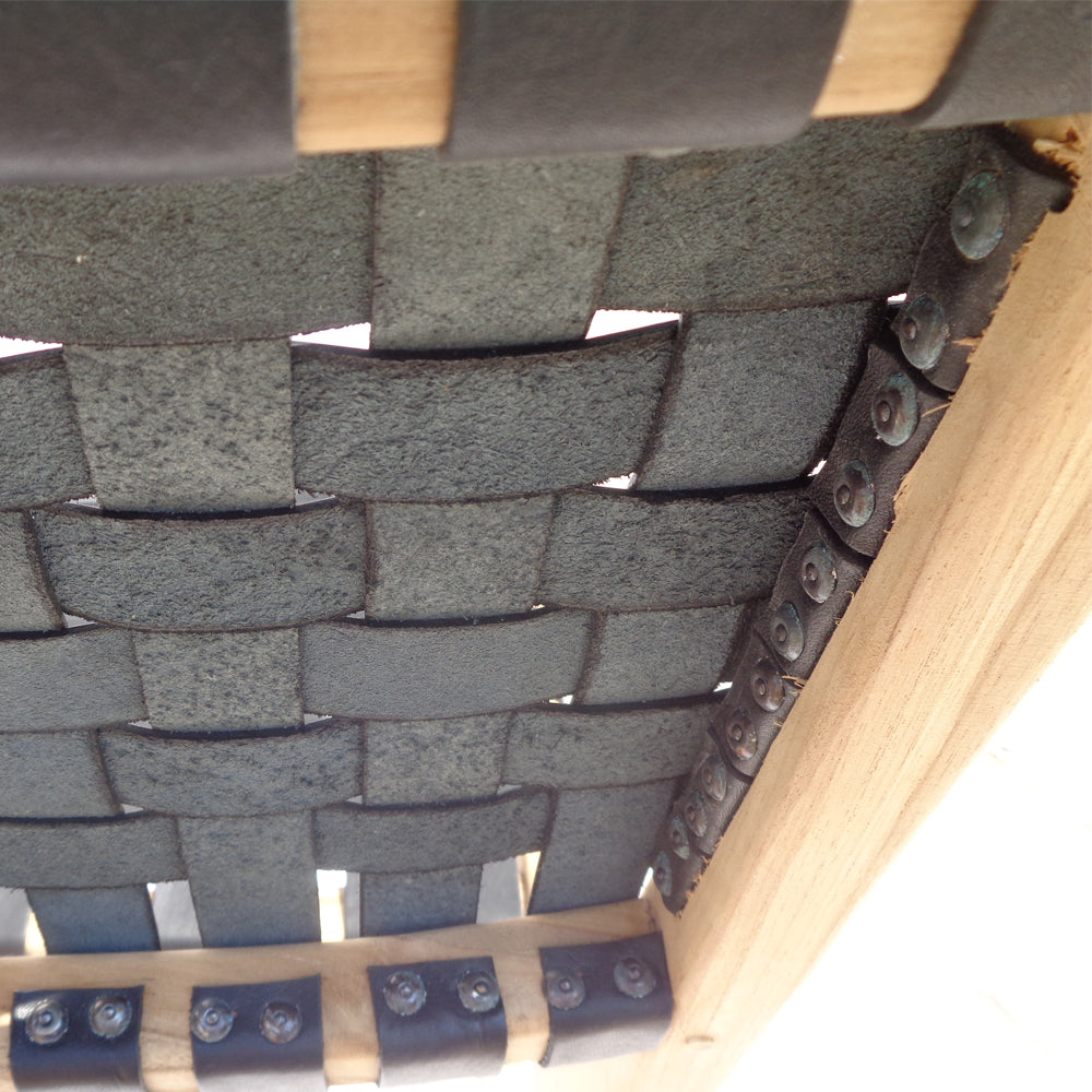 Материал: Рамка от тиково дърво / седалка и облегалка, тапицирани с кожени ленти