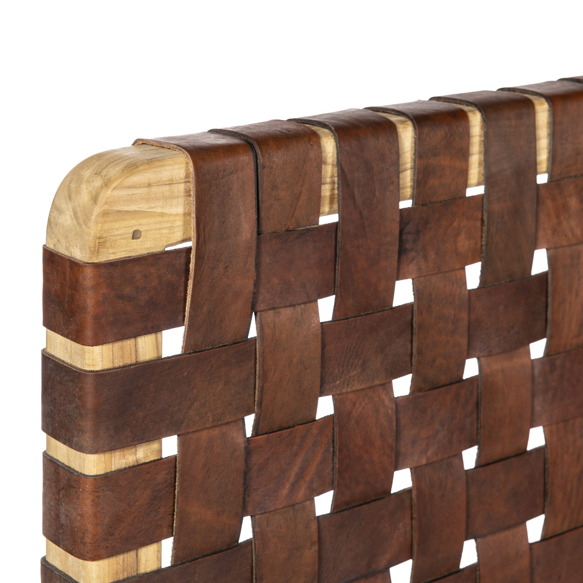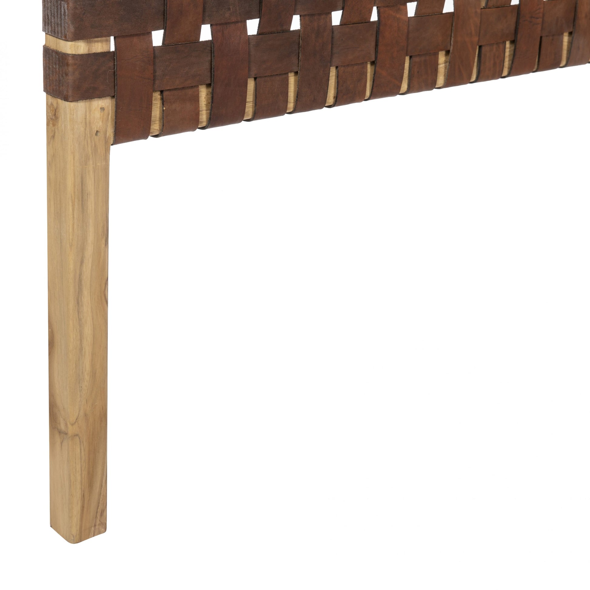 Таблата за легло от естествена кожа ZUZI в кафяв цвят е с рамка от масивно тиково дърво, комбинирана с ръчно тъкани кожени каишки, което внася уникален занаятчийски щрих във всяка спалня. Майсторски изработена, тази табла балансира издръжливостта с изтънчен дизайн, подобрявайки както комфорта, така и стила на вътрешните пространства. Отличителният ѝ детайл добавя визуален интерес и подобрява цялостната атмосфера на вашата спалня.